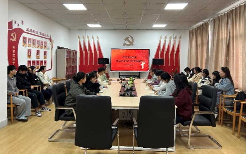 11月17日,考古文博学院第三党支部组织召开十一月主题党日暨支部书记讲党课活动。支部全体党员参加本次活动,活动由支部书记黄洪燕主持。
