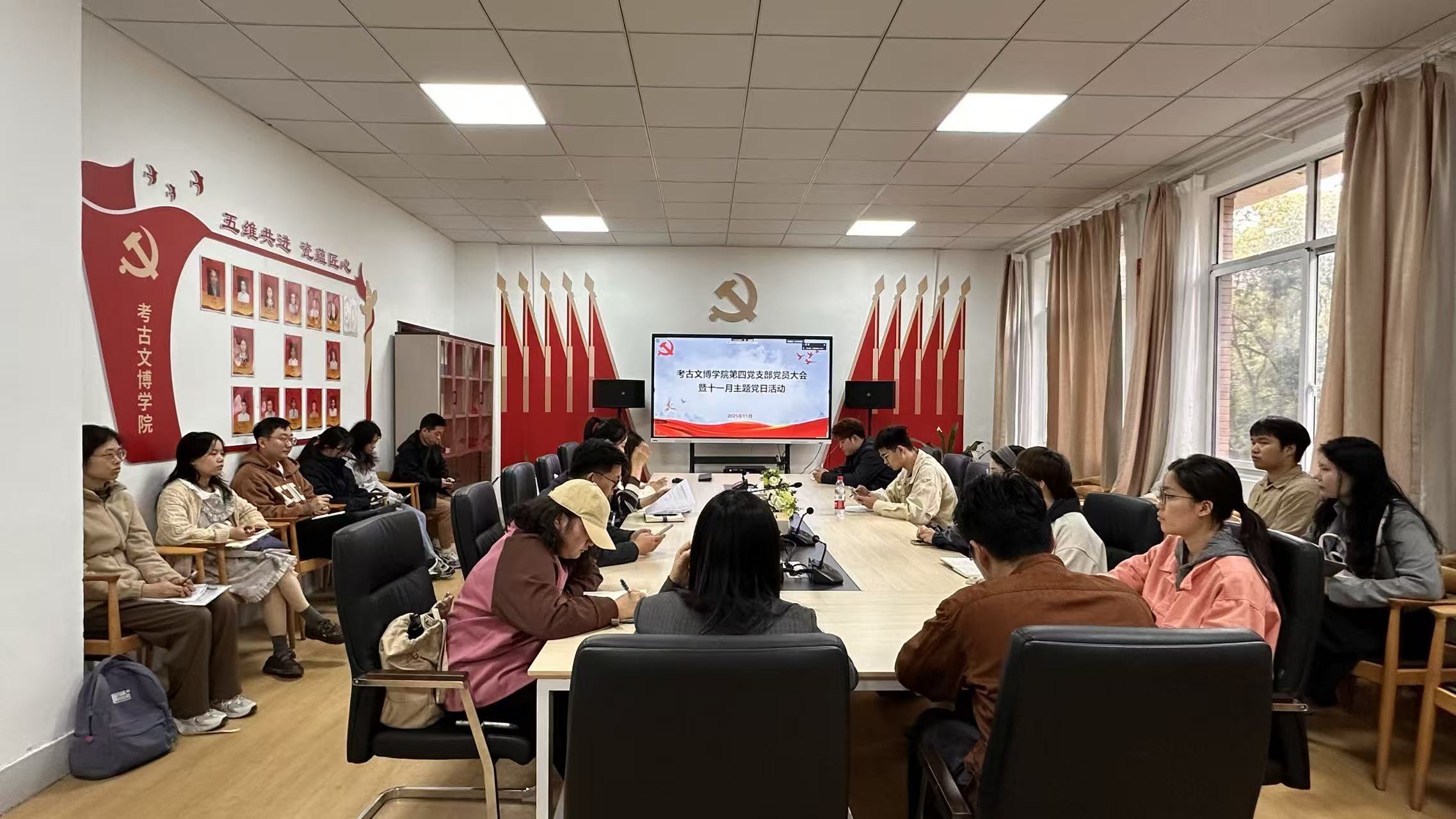 11月12日,考古文博学院第四党支部组织召开党员大会暨十一月主题党日活动。支部全体党员以线上线下相结合的方式参加本次会议,会议由支部书记邹乐主持。