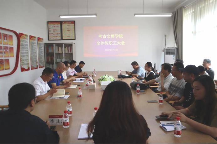 为做好新学期工作部署,确保各项工作有序开展,9月3日,考古文博学院召开2023年秋季学期第一次全体教职工大会,学院领导班子成员及全体教职工参加会议。会议由学院党委书记王建主持。
