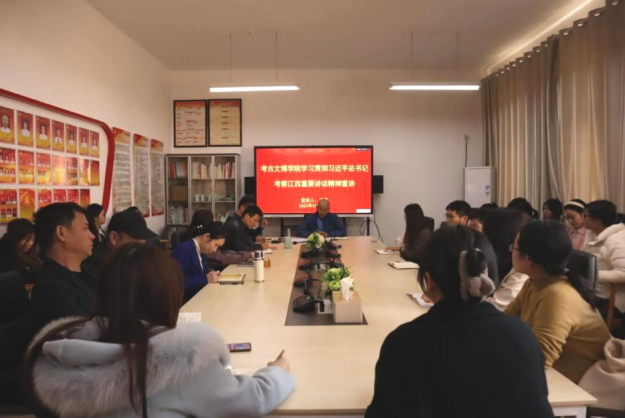 11月22日,校学习贯彻习近平总书记考察江西重要讲话精神宣讲团成员王建到考古文博学院展开宣讲。考古文博学院全体教职工及学生代表参加会议。