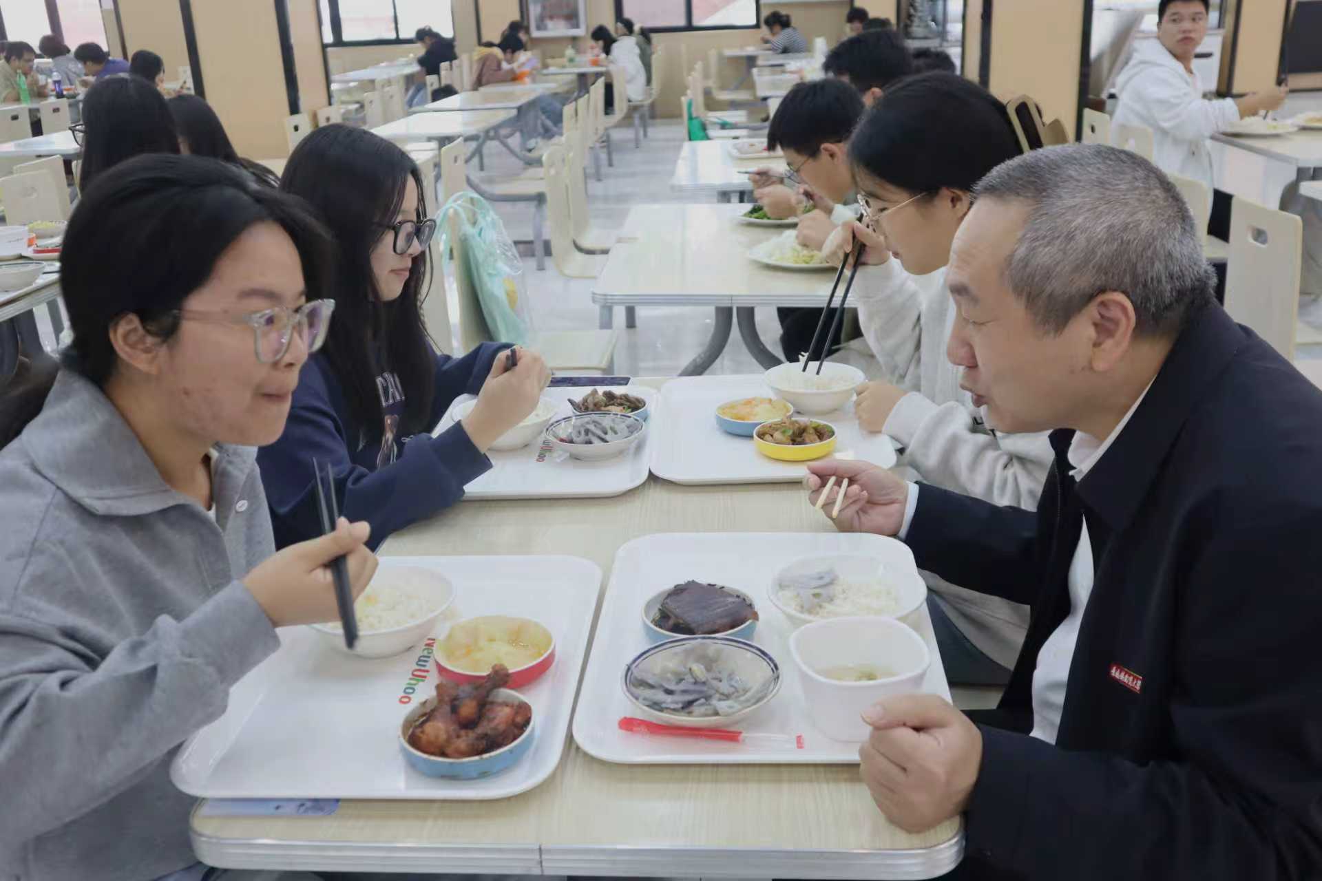 随后,他与同学们一起来到食堂,大家围坐交流、共进午餐,黄勇亲切询问学生饮食习惯、校园生活等情况。
