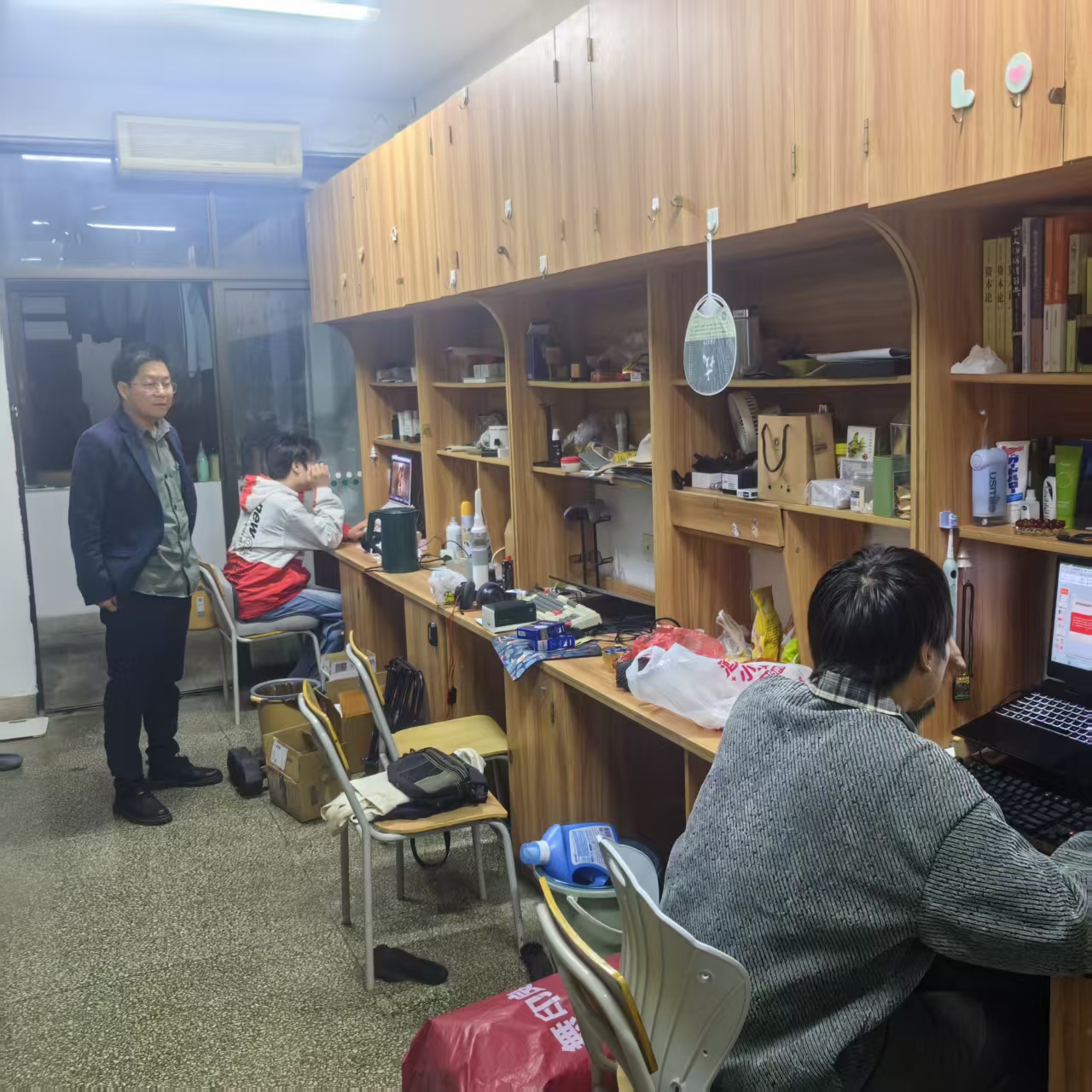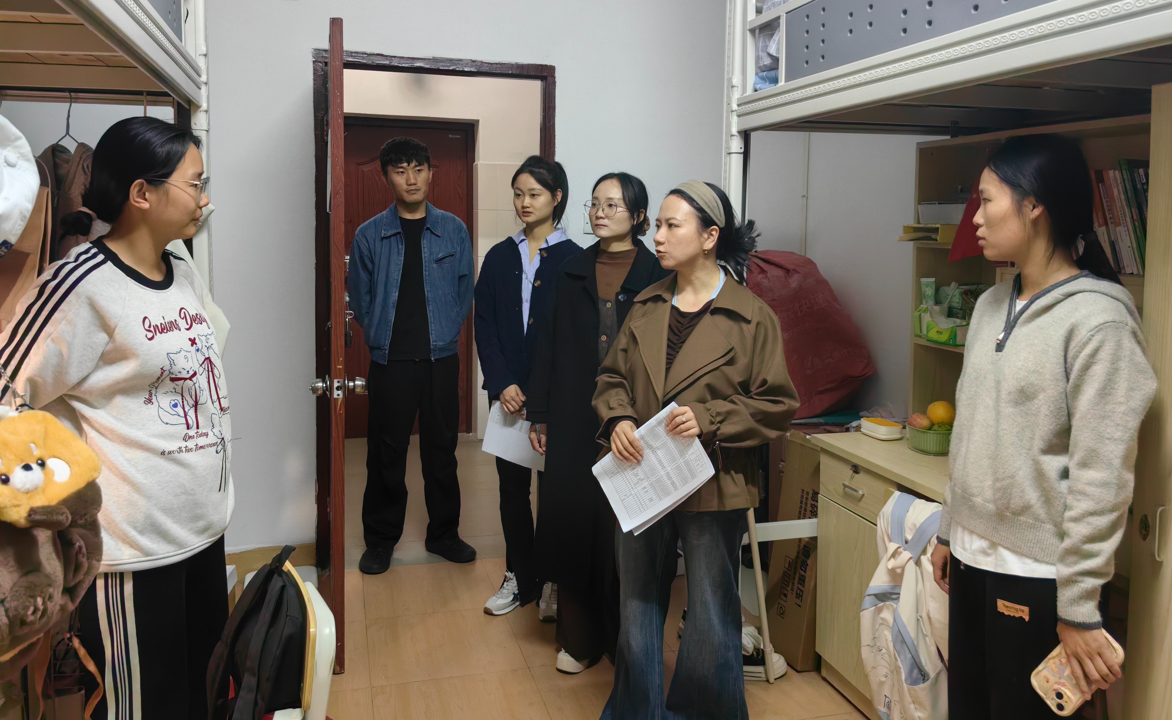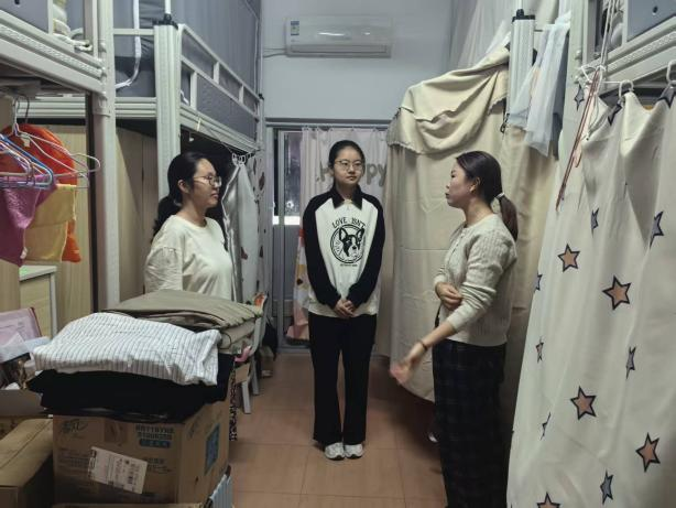 11月14日晚,院党委副书记陈婷和学院辅导员走进全院学生宿舍,开展学生宿舍消防安全隐患排查工作,重点针对违章电器使用、私拉电线、寝室卫生等问题进行检查。期间,辅导员和学生亲切交流,提醒学生宿舍安全管理规定、安全用电常识,教育引导学生自觉遵守学校宿舍管理相关规章制度,提高安全防范意识,掌握基本消防技能,养成良好卫生习惯。