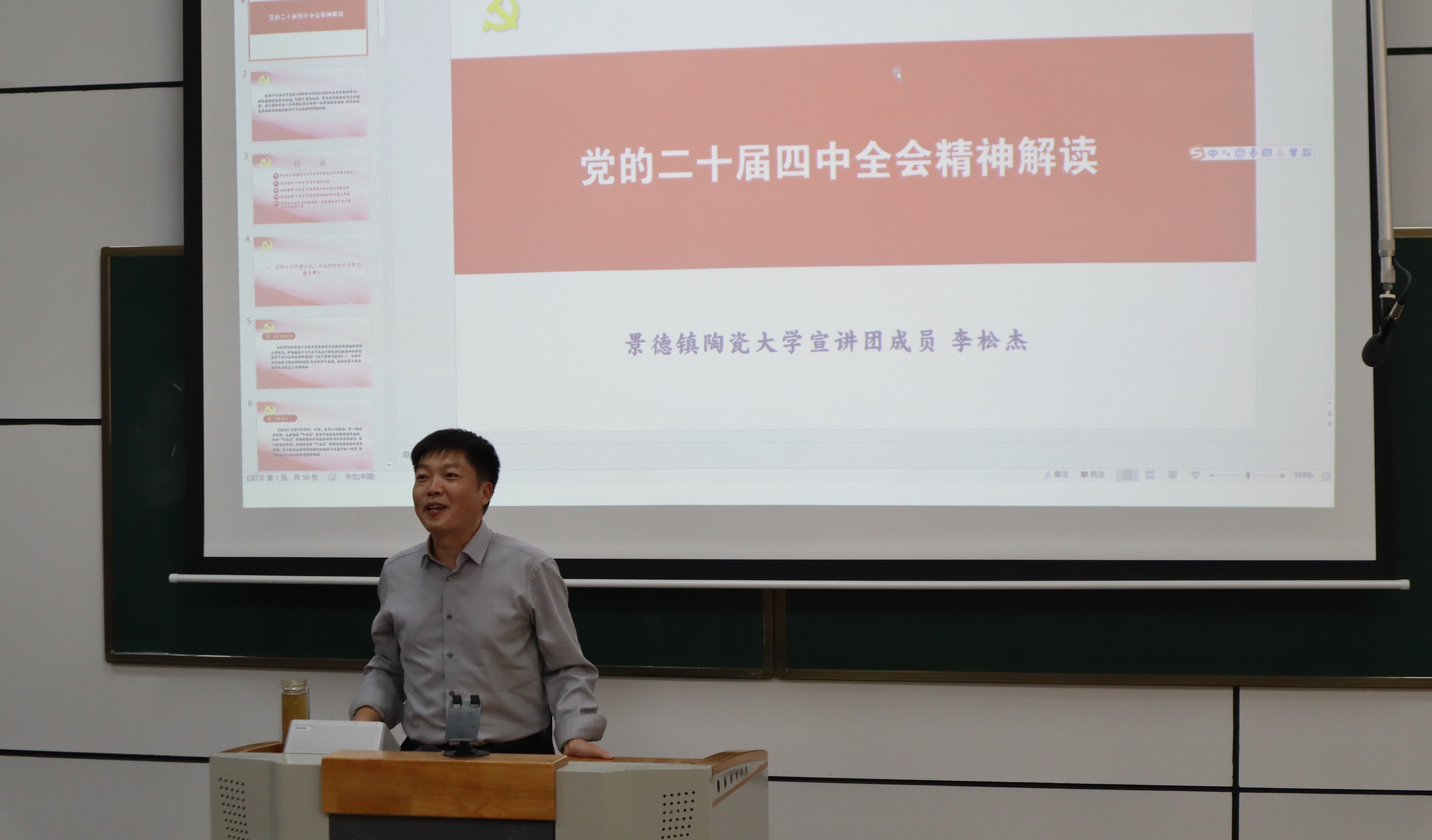 为全面引导广大师生党员深入学习领会党的二十届四中全会精神,把思想和行动统一到全会精神上来,推动兴起学习宣传贯彻党的二十届四中全会精神热潮,12月1日,党的二十届四中全会精神宣讲报告会在逸夫楼圆阶教室召开,校学习贯彻党的二十届四中全会精神宣讲团、马克思主义学院副院长李松杰作宣讲报告,考古文博学院全体师生党员和学校离退休干部工作处的老党员们到场聆听。