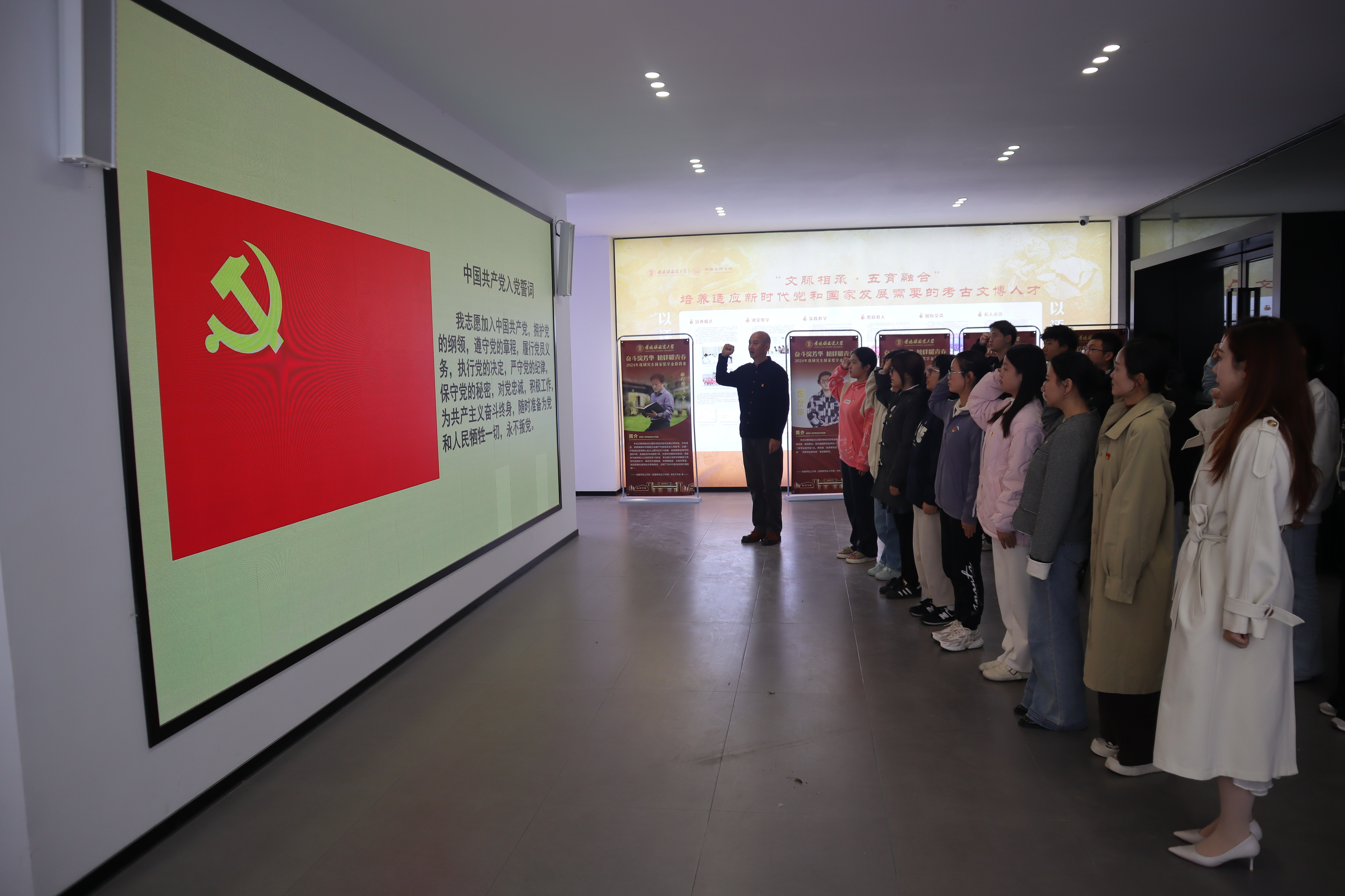 为加强入党前教育,进一步提高我院发展对象对党的认识水平,确保新发展党员质量,考古文博学院新发展党员依据学校安排于11月9日至12日进行系列学习。11月13日,我院党委举办第二十期发展对象分享交流会及新发展党员入党宣誓仪式。院党委书记王建、党委副书记陈婷、组织员刘雨婷、第三党支部书记黄洪燕、第四党支部书记邹乐和全体新发展党员参加。